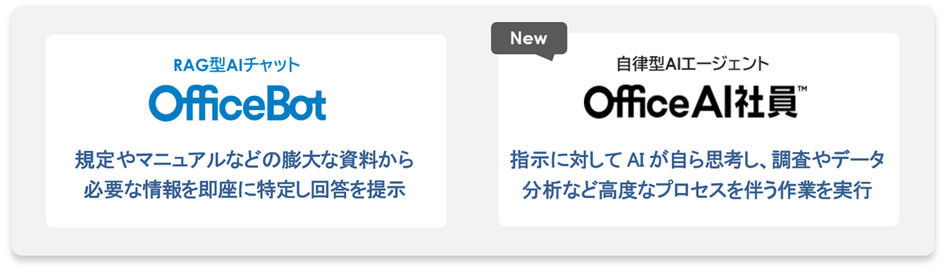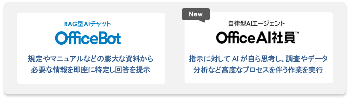 今回の対応により、信用金庫内で日常的に利用する業務PCから、用途に合わせて2つのAIを柔軟に使い分けることが可能になります。【OfficeBot】による効率的なナレッジ活用と、【OfficeAI社員】による高度な作業の自動化を組み合わせることにより、信用金庫における業務効率化及び生産性の向上を一層強力に支援してまいります。