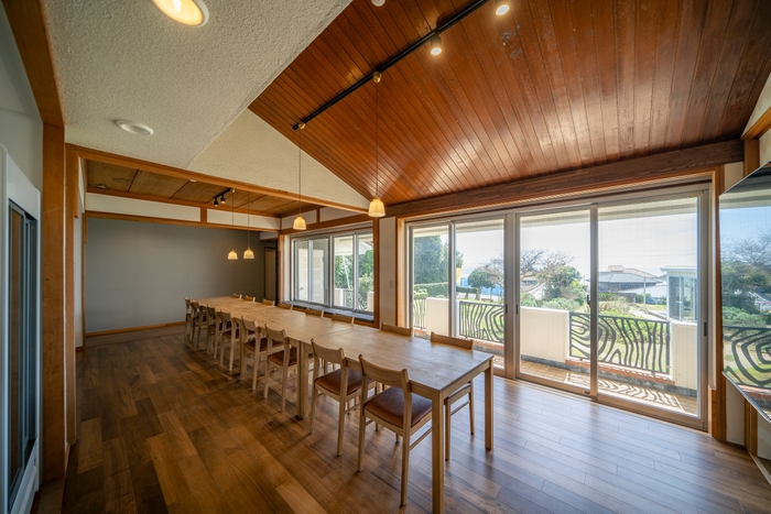 白浜レジデンスは半世紀の歴史を持つ大邸宅を大幅リノベーションした施設で、寝室3部屋(1部屋パーテーション区切り可)、16名で使っても余裕があるダイニングキッチン、レトロなゲームが楽しめるプレイルームを備えております。