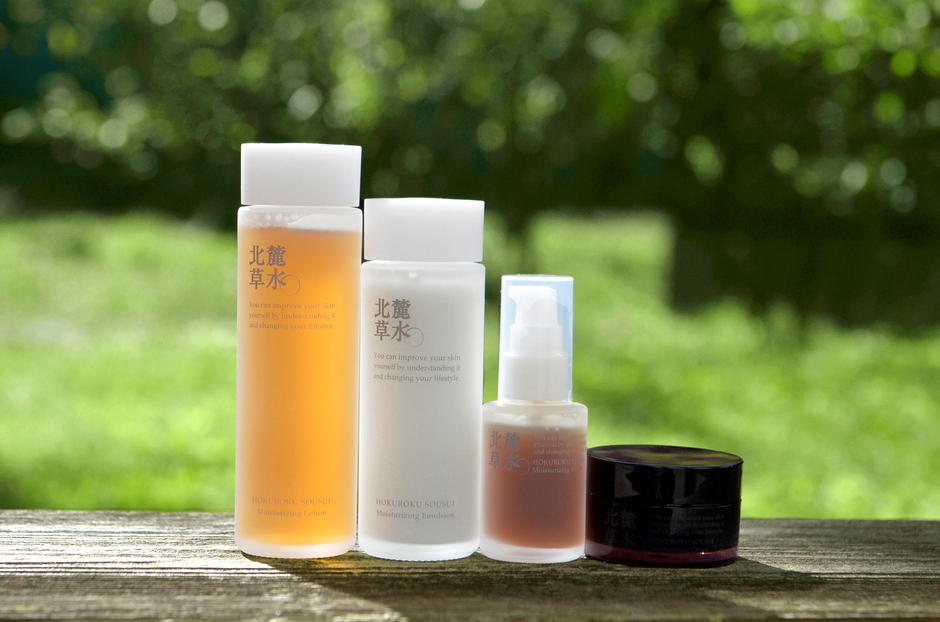 スキンケアの大部分を占めるのは水です。北麓草水はこの水を薬湯にするという着想をきっかけに、浸草水や浸草油という独自原料を生み出しました。浸草水や浸草油とは、富士山の伏流水や植物から採れるオイルに野草などを浸け込んで、その有用成分をたっぷりと溶け込ませたものです。モイストタイプのスキンケアにも、肌を整える成分として甘茶蔓や現の証拠などの野草をはじめ、柚子や生姜などの有用成分を含んだ浸草水や浸草油を配合しています。アクアポリンの働きに着目したスダチ果皮エキスを新たに加えることで、さらに潤いを保つ力を育み、みずみずしくすこやかな肌へ導くスキンケアになりました。