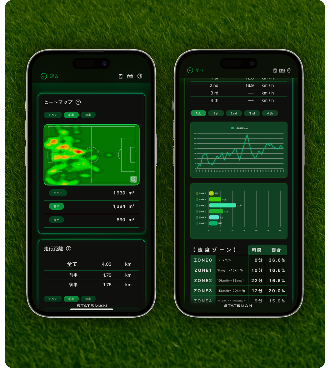 従来のアクティビティアプリが「活動全体」を記録するのに対し、STATSMANは練習や試合の特定区間のみを抽出し分析できる点が特長です。