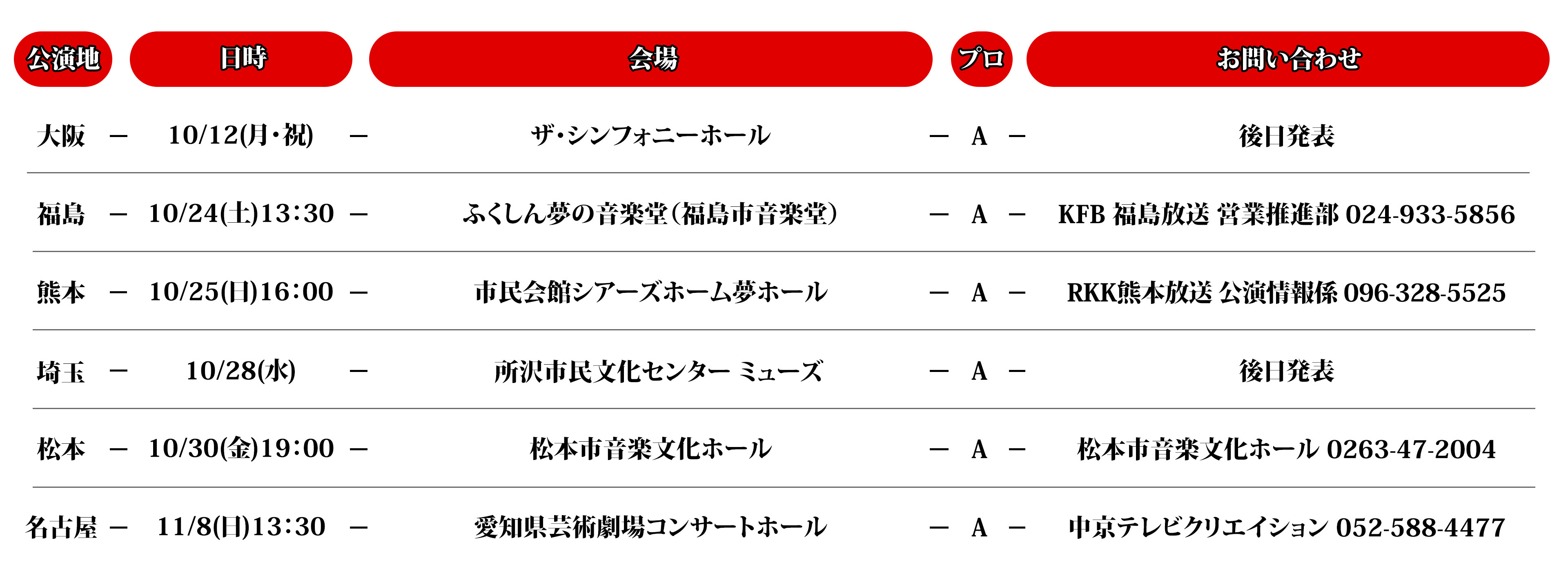 公演地:大阪、福島、熊本、埼玉、松本、名古屋