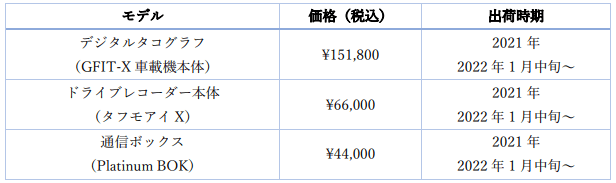 飲酒運転防止のためのアルコール検知器及びIT点呼システムを開発・販売する東海電子株式会社(本社:静岡県富士市 代表取締役:杉本 哲也)は、この度、デジタルタコグラフとドライブレコーダー(テクノホライゾン社製)の販売、及び、この2つの安全機器で使用する『クラウド運行管理システム 運管 PRO』の販売を11月25日に開始いたしました。