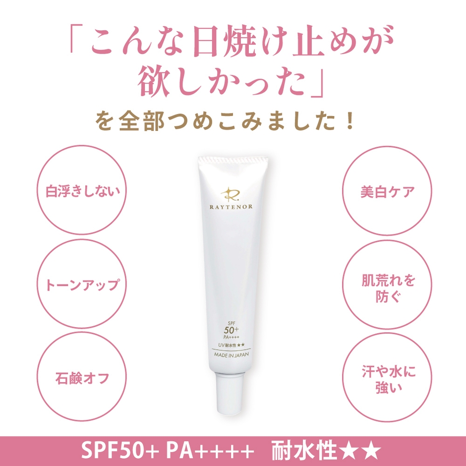 日焼け止めは塗らなきゃいけないけれど、本当は塗りたくない…エステサロンに訪れるお客様がこぼした一言から、私たちの日焼け止め開発はスタートしました。美肌を守る嬉しい存在であるはずの日焼け止めを毎朝嫌々塗る女性たち。皆様にとって、毎朝塗るのが楽しみになるくらい心地よく、それでいて肌の負担も紫外線のダメージもしっかりと軽減することができるような、相棒のような存在になれる日焼け止めを作りたい。それがレイテノール薬用UVクリームのコンセプトです。「ノーファンデで生きましょう」を合言葉にするレイテノールだからこそお届けできる、毎日の素肌にツヤを添える日焼け止めが誕生しました。