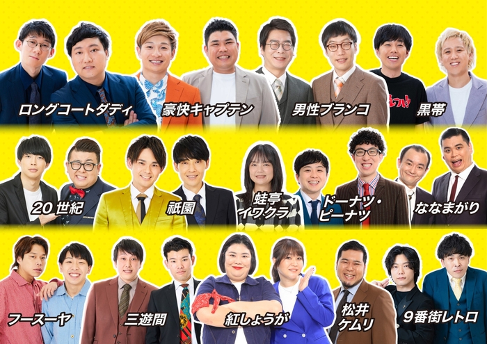 本年は、更なる進化を遂げる! キングオブコント2025優勝者のロングコートダディをはじめ、上方漫才大賞新人賞を受賞し、M-1で活躍した豪快キャプテンや、男性ブランコ、フースーヤ、黒帯など、よしもと漫才劇場でも大人気の芸人達が集結します。また、園内各所での本イベントコラボ企画にも注目です。