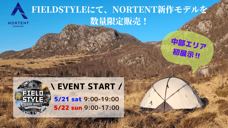国内最大級の遊びの祭典 『FIELDSTYLE SEASIDE MARKET 2022』にて ノルウェー発のハイスペックテント 『NORTENT(ノルテント)』を東海地方初展示! ~2022年5月21日(土)~22日(日)の2日間~