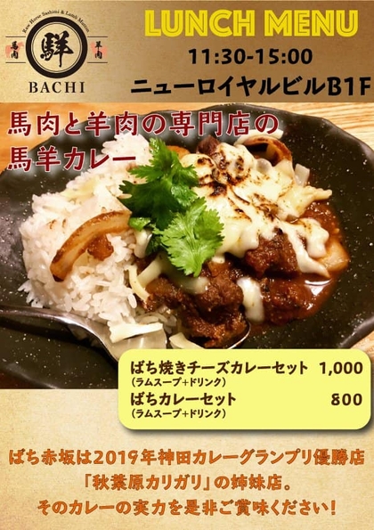 馬と羊が話題騒然! 非常識メニューで話題の𩣆(ばち)赤坂が新作カレーにてランチオープン!!