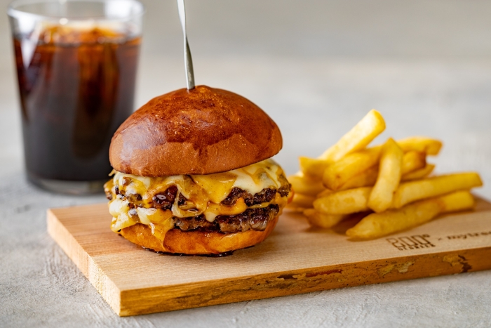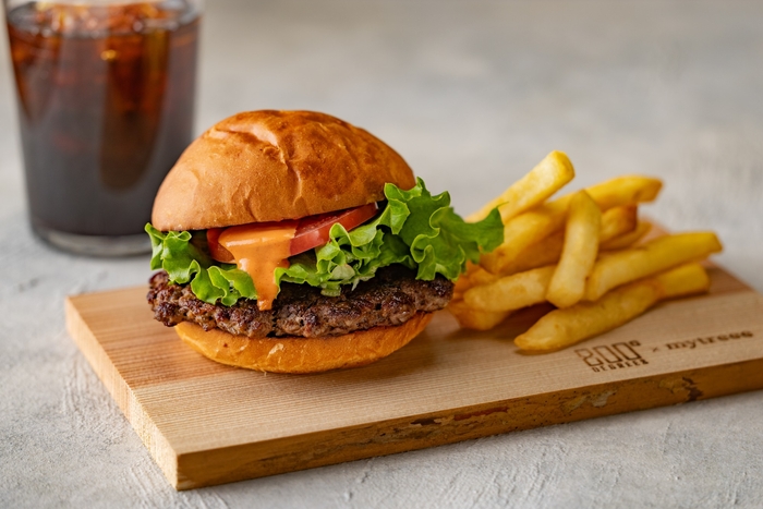 神奈川県産やまゆり牛とオージービーフをブレンドした牛100%粗挽きパティを中心に、横浜・仲町台にあるバンズ専門店「BLUE CORNER」と共同開発したブリオッシュバンズ、自家製オーロラソース、自家製ピクルスなど、素材選定から仕立てまで一貫してこだわったクラフトバーガーを提供します。スマッシュ製法による香ばしくジューシーな焼き上がりと、バンズ→パティ→野菜の順に組み立てる独自構成により、ひと口目から肉の旨味をダイレクトに感じられるよう設計しました。地域食材や専門店との連携を通じて、素材の魅力を最大限に引き出した全3種類のラインアップを展開します。