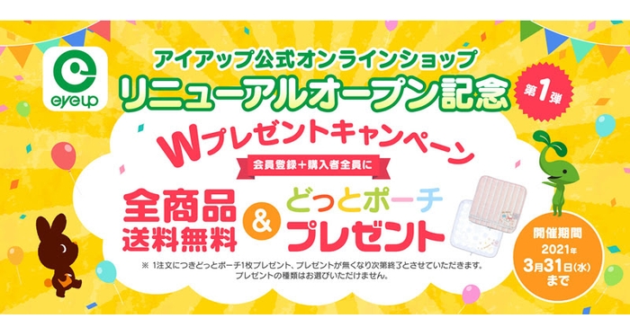 アイアップ公式オンラインショップ オープンキャンペーン!!2021-02-03 11:50株式会社アイアップ本日、アイアップ公式オンライショップがオープンしました!本日2月3日より、アイアップ公式オンラインショップ オープン3大キャンペーンを行います!!詳しくは、アイアップHPまで!!https://www.eyeup.co.jp/https://www.eyeup.co.jp/p/registerhttps://www.eyeup.co.jp/p/searchhttps://www.eyeup.co.jp画像・ファイル一覧一括ダウンロード