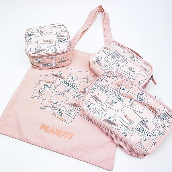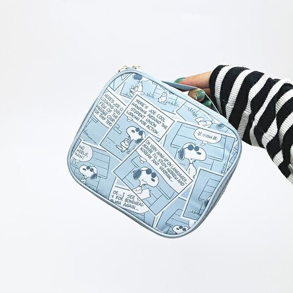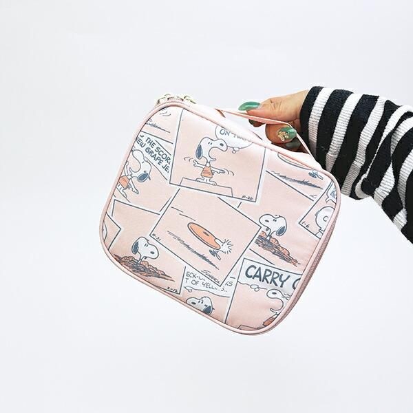 スヌーピーのたためるボックスポーチはコンパクトで持ち運び便利。パステルカラーにコミック柄がほっこりするデザインです。 | NEWSCAST