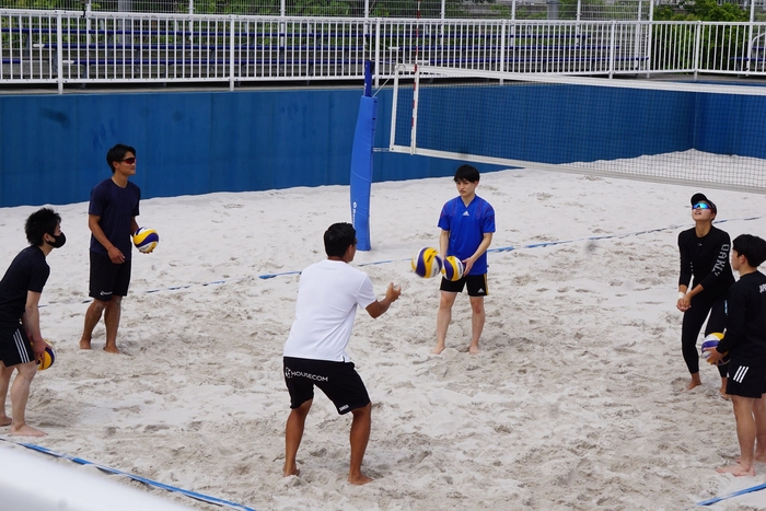 4名のビーチバレーボールアスリート社員による健康促進と社員交流を目的としたビーチバレーボール体験会を実施しています。