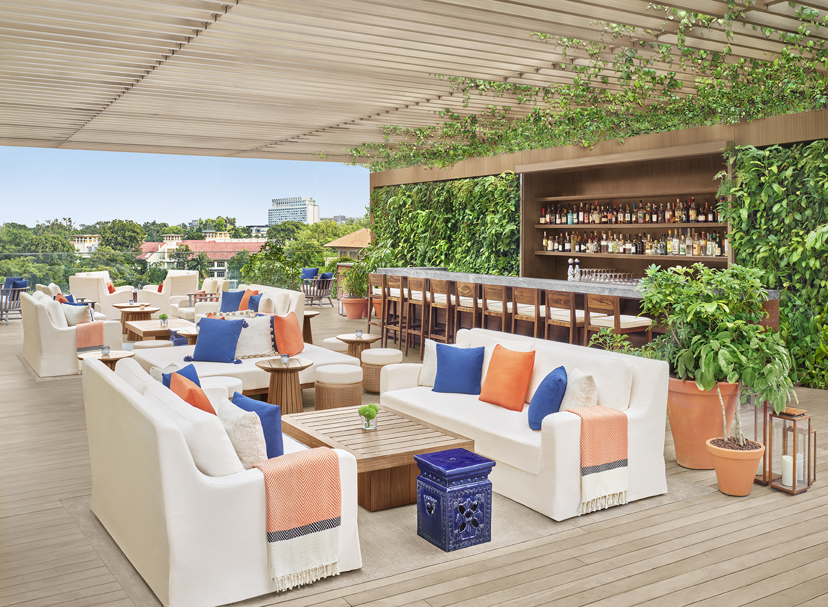 ホテルのルーフトップに位置するバー&レストラン、The ROOFでは、オーチャード・ロードの活気ある街並みを眺めたり、全長43mのプール底部に設えられた円形ガラス越しに、9階下のガーデンコートヤードを見下ろしたりと、ユニークな眺望が楽しめます。プールは宿泊ゲスト専用ですが、The ROOFは外部ゲストも利用できる、都会にいながらリゾート感を体感できるスポットです。