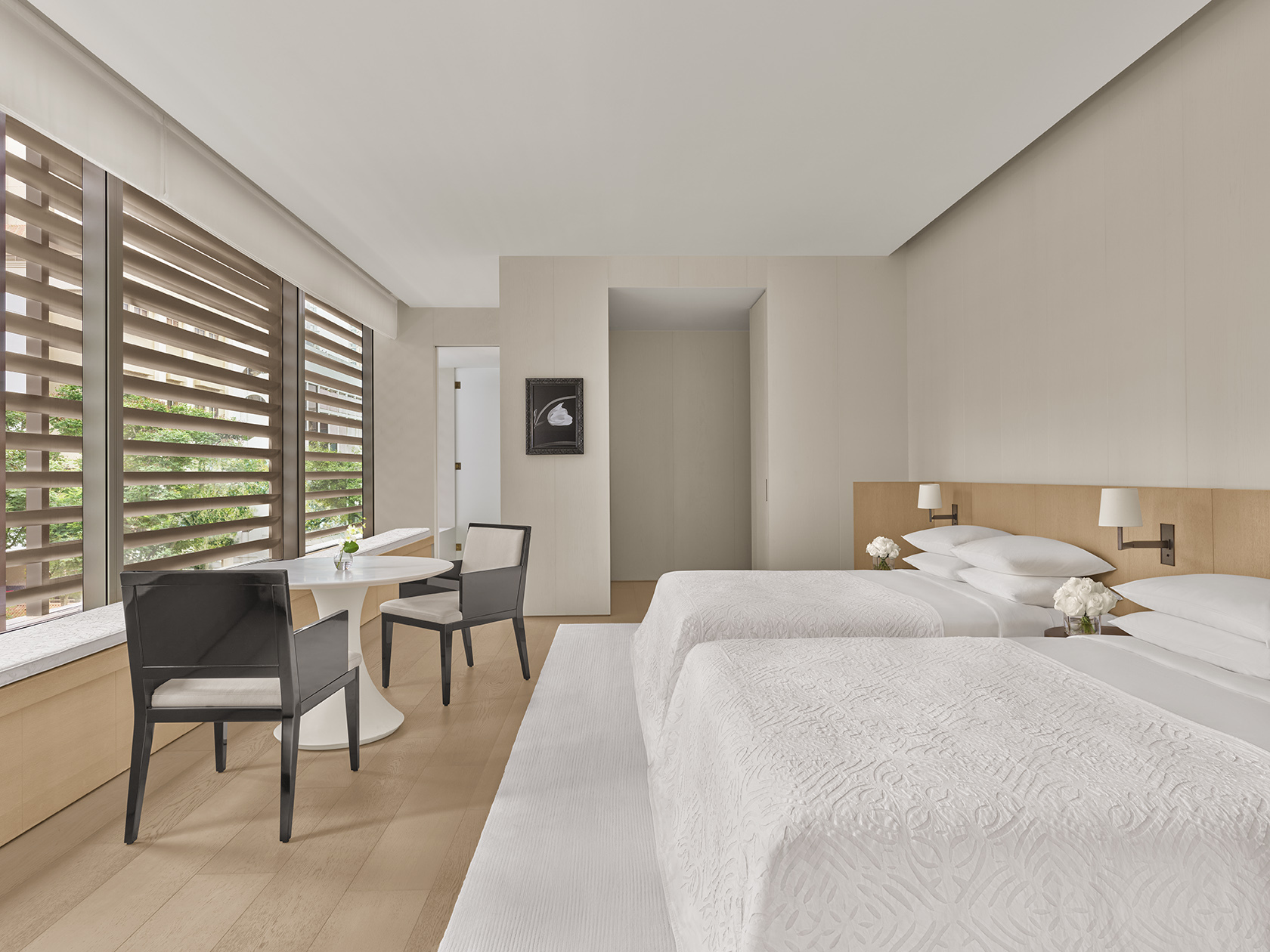 エディション・シンガポールのツインベッドはクイーンサイズ。ファミリー利用には、最大4名まで快適に滞在できるクイーンサイズのツインベッドを備えたダブルルームがおすすめです。