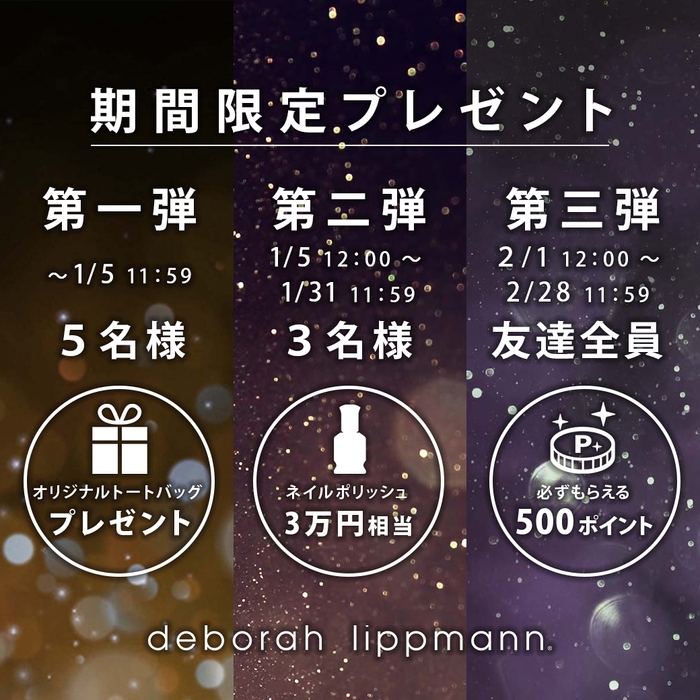 ネイルブランド「デボラリップマン」は、2021年12月22日より LINE追加で特典が貰える期間限定キャンペーンを開催!