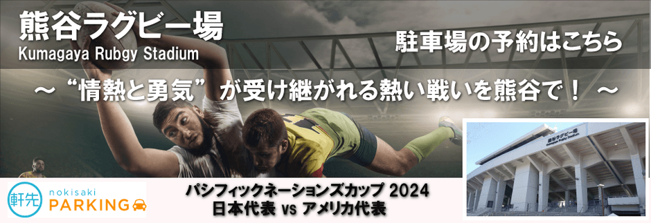 駐車場シェアサービス「軒先パーキング(https://parking.nokisaki.com)」を運営する軒先株式会社(本社:東京都港区、代表取締役:西浦 明子、URL:https://www.nokisaki.com/、以下 軒先)は、2024年9月7日に熊谷ラグビー場(熊谷スポーツ文化公園内)で開催されるパシフィックネーションズカップ2024 日本代表vsアメリカ代表戦における公式駐車場ならびに臨時駐車場の予約受付を開始したことをご報告いたします。