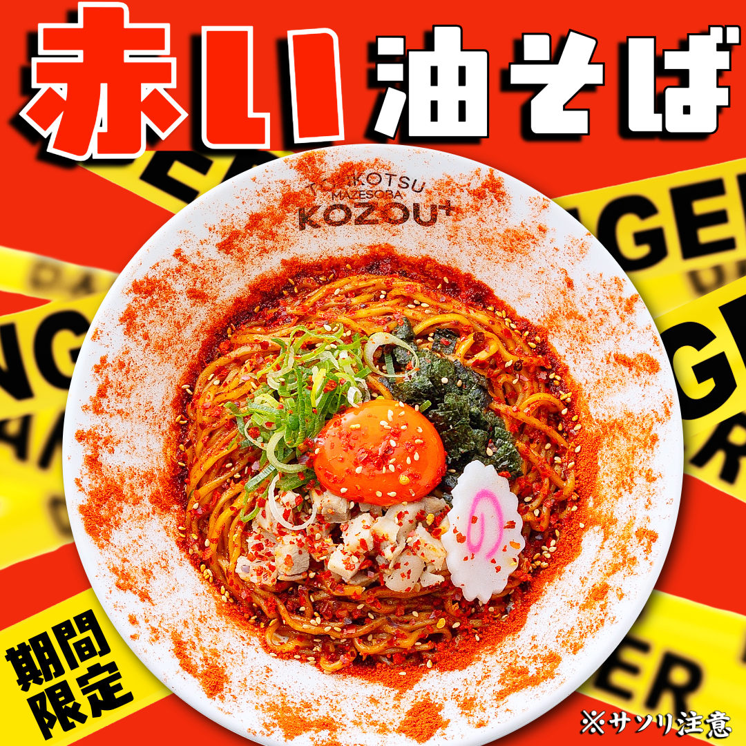株式会社KOZOU(大阪府大阪市、代表取締役社長 堀川 大地)が運営する「極濃豚骨 らーめん小僧」「豚骨魚介ラーメン 小僧またおまえか。」「豚骨まぜそば KOZOU+」(KOZOUプラス)は、2026年3月1日(日)に“赤”をテーマにした期間限定メニューを新発売いたしました。