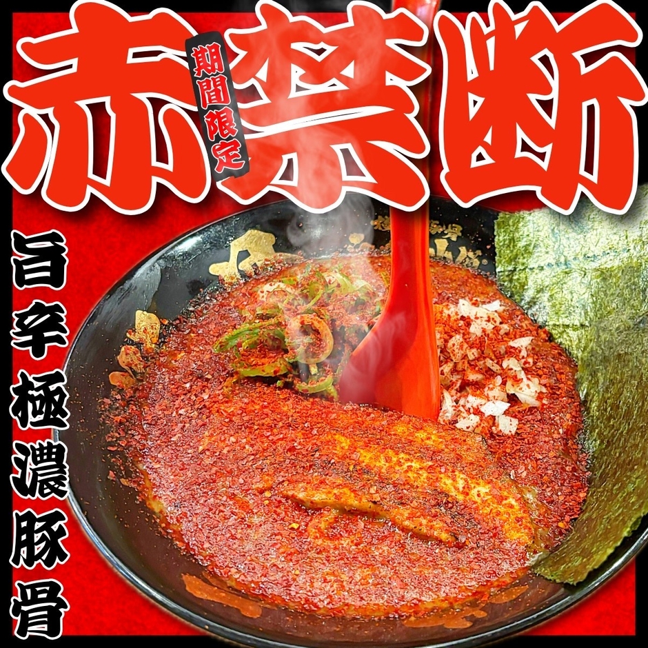 らーめん小僧の看板商品「禁断らーめん」をベースに、唐辛子をふんだんにかけた衝撃の一杯!見た目に反して辛さは控えめ。唐辛子のうまみと香りを存分にお楽しみください。