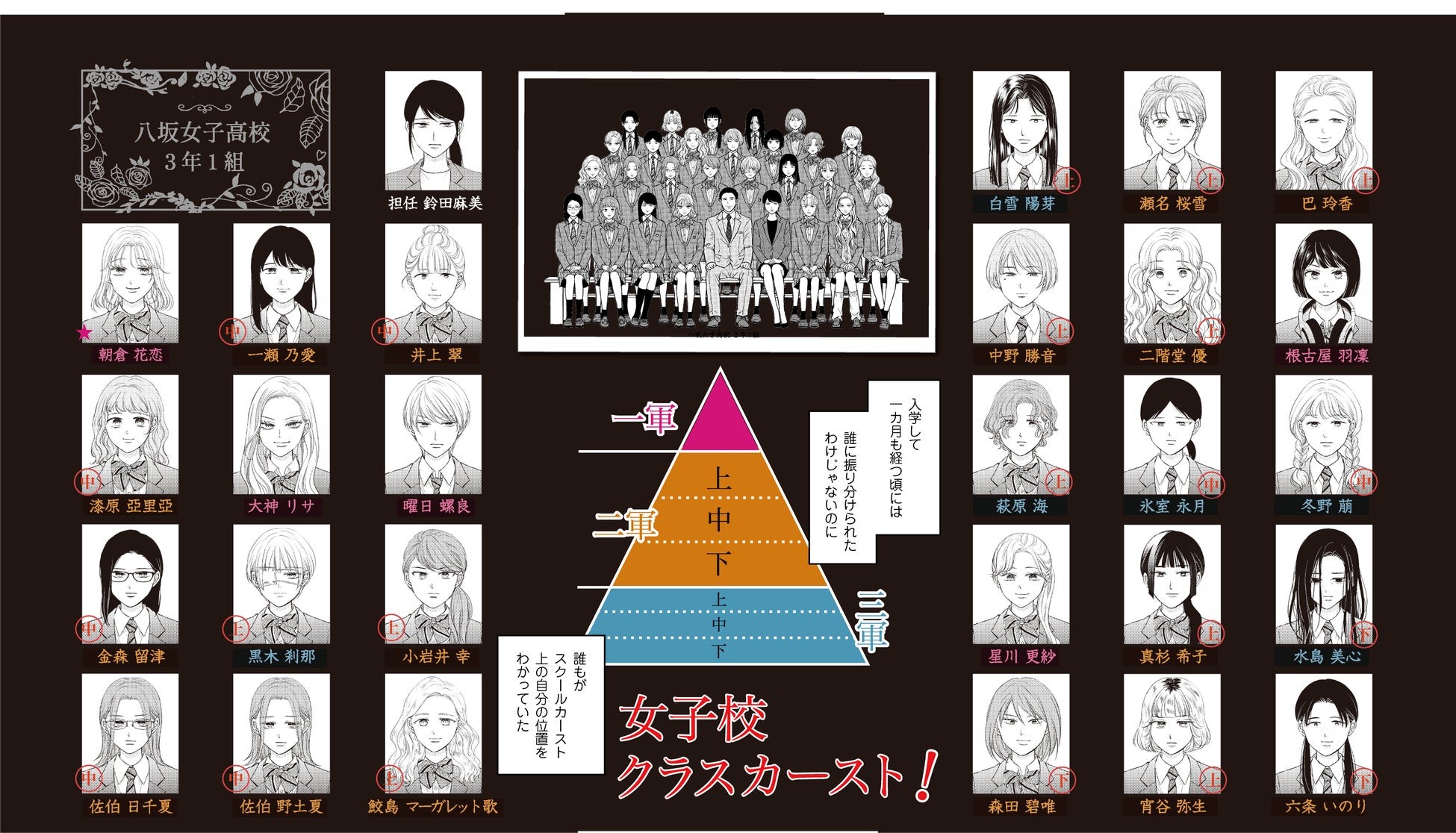華やかな容姿や才能に恵まれた、目立つ存在である一軍女子。これといった特徴のないごく普通の二軍女子。陰キャや変わり者の掃きだめである最下層の三軍女子。