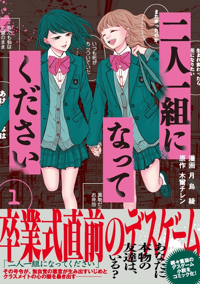 本作は木爾チレン氏の大人気デスゲーム小説『二人一組になってください』を月島綾氏がコミカライズし、コミックシーモアにて先行連載中です。待望の紙コミックスが3月19日に発売になります。