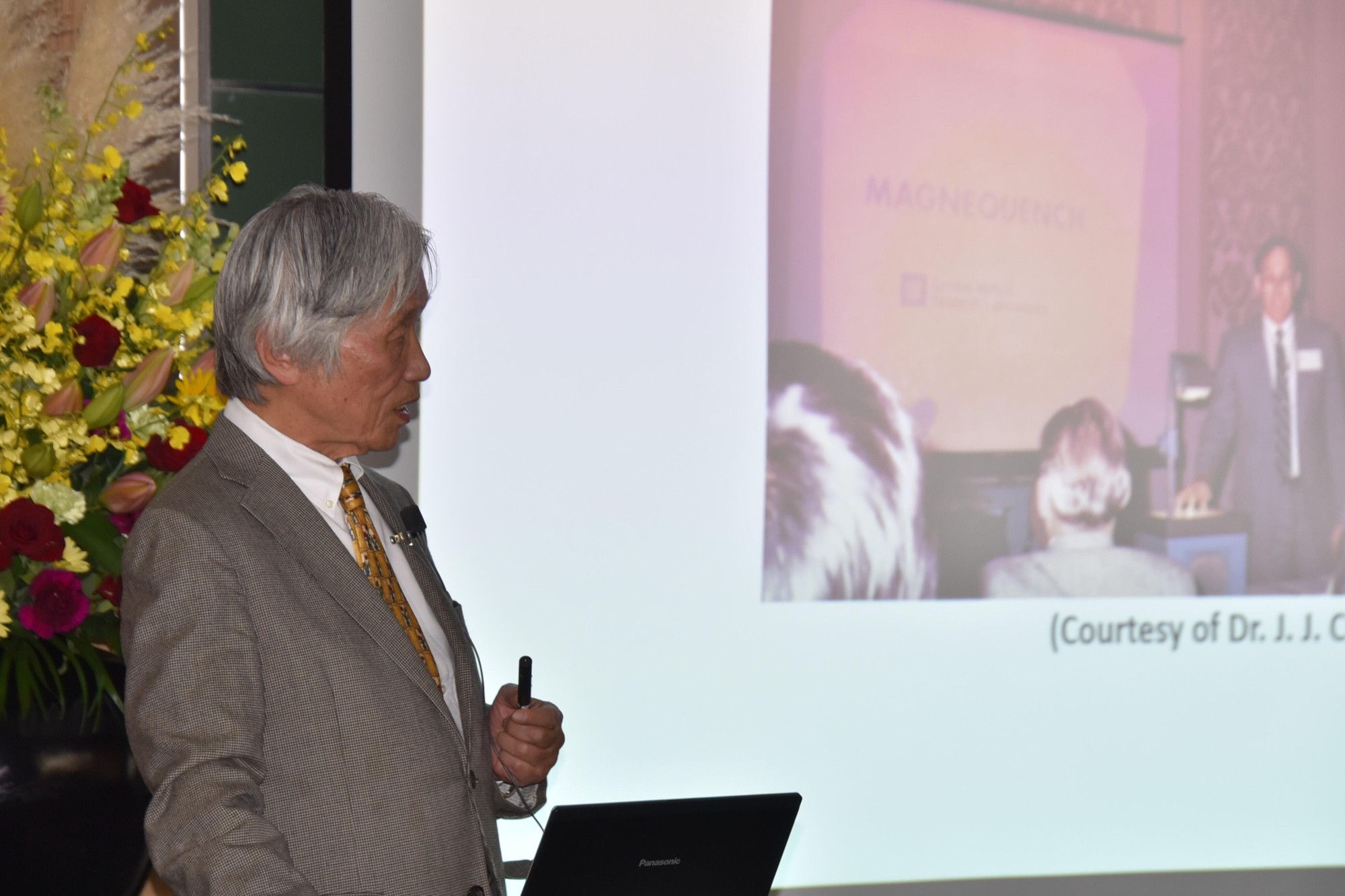 年配研究者に向けて「82歳になる今も完璧な産業用磁石を目指して研究している」と強調し、若手研究者には「イノベーションを起こすことを目指してほしい」と述べ、そのために「若い人が非公式の研究をする時間を与えてほしい」と訴えました。聴講者からの「失敗すると前へ進めない。どうしたらいいか?」との質問には「失敗しても次のアイデアを出せばいい。私は歩いている時など時間があったら考えている」と答えていました。