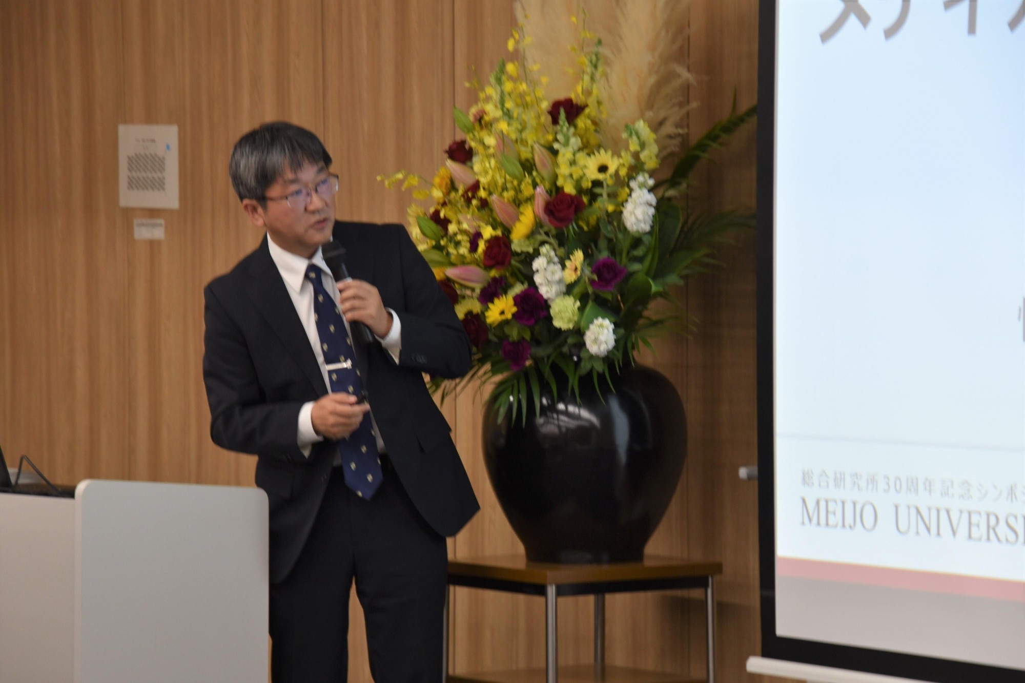 「名城大学総合研究所」(所長・小髙猛司理工学部教授)の設立30周年を記念したシンポジウム「学際的アプローチによる社会課題解決への挑戦」が10月30日、天白キャンパス研究実験棟Ⅳで開催されました。教員や学生ら約120人が聴講し、佐川眞人特任教授による基調講演やパネルディスカッションを通して、これまでの総合研究所の成果や社会課題の解決に向けた今後の本学の研究の在り方などについて理解を深めました。