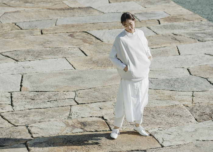 ブランド名「kermu/ケルム」は、ドイツ語のkern(中心)とmunter(生き生きとした)を合わせた造語。ケルムの服を着て一歩前へ踏み出し、人の輪の中心で輝いてほしいとの想いを込めて。