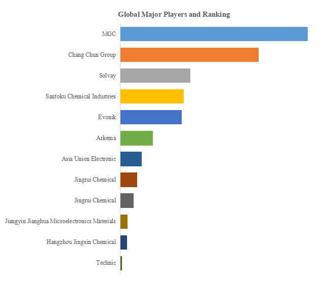 YHResearchのトップ企業研究センターによると、電子グレードの過酸化水素の世界的な主要製造業者には、MGC、Chang Chun Group、Solvay、Santoku Chemical Industries、Evonik、Arkema、Asia Union Electronic、Jingrui Chemical、Jingrui Chemical、Jiangyin Jianghua Microelectronics Materialsなどが含まれている。2023年、世界のトップ5企業は売上の観点から約78.0%の市場シェアを持っていた。