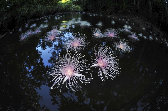 西表島は日本国内のマングローブ林の約90%を有するため、どの地域よりも広い自生環境があります。川沿いにも自生するので、川が豊富にある西表島では、落下した花が川面に浮かぶ姿が見られます。淡い薄桃色の花が水面を埋め尽くし、まるで絨毯を敷き詰めたかのような景観です。この絶景を楽しんでもらうため、朝食や場所、時間にこだわったプログラムを提案します。