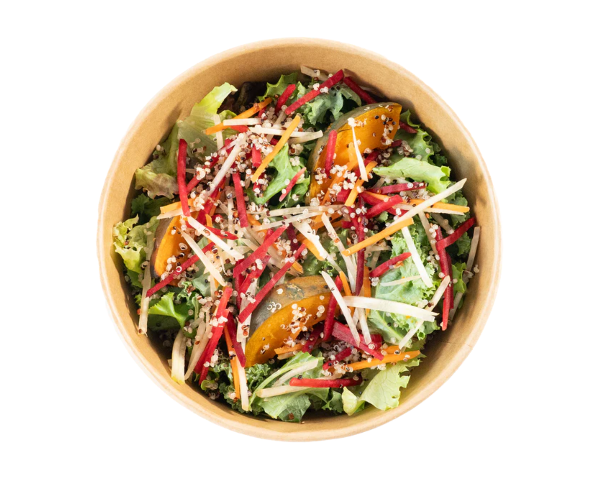 栄養豊富なケールと、スーパーフードとして知られるキヌアをたっぷり使用したベジタブルサラダ。ビーツやカラフルにんじんを加え、軽やかで飽きの来ない味わいに仕立てました。野菜本来の風味を引き立てるシトラスビネガードレッシングで、さっぱりとしながらも満足感のある一品です。