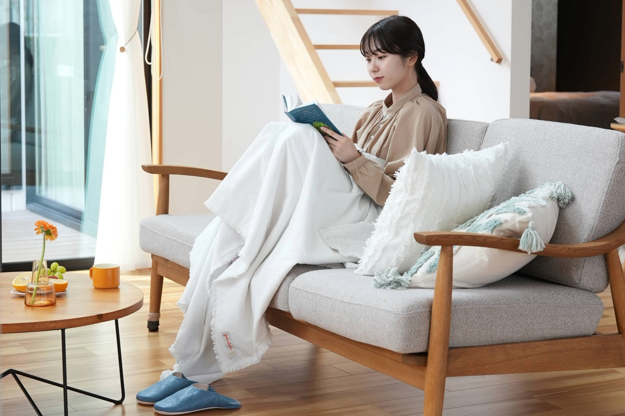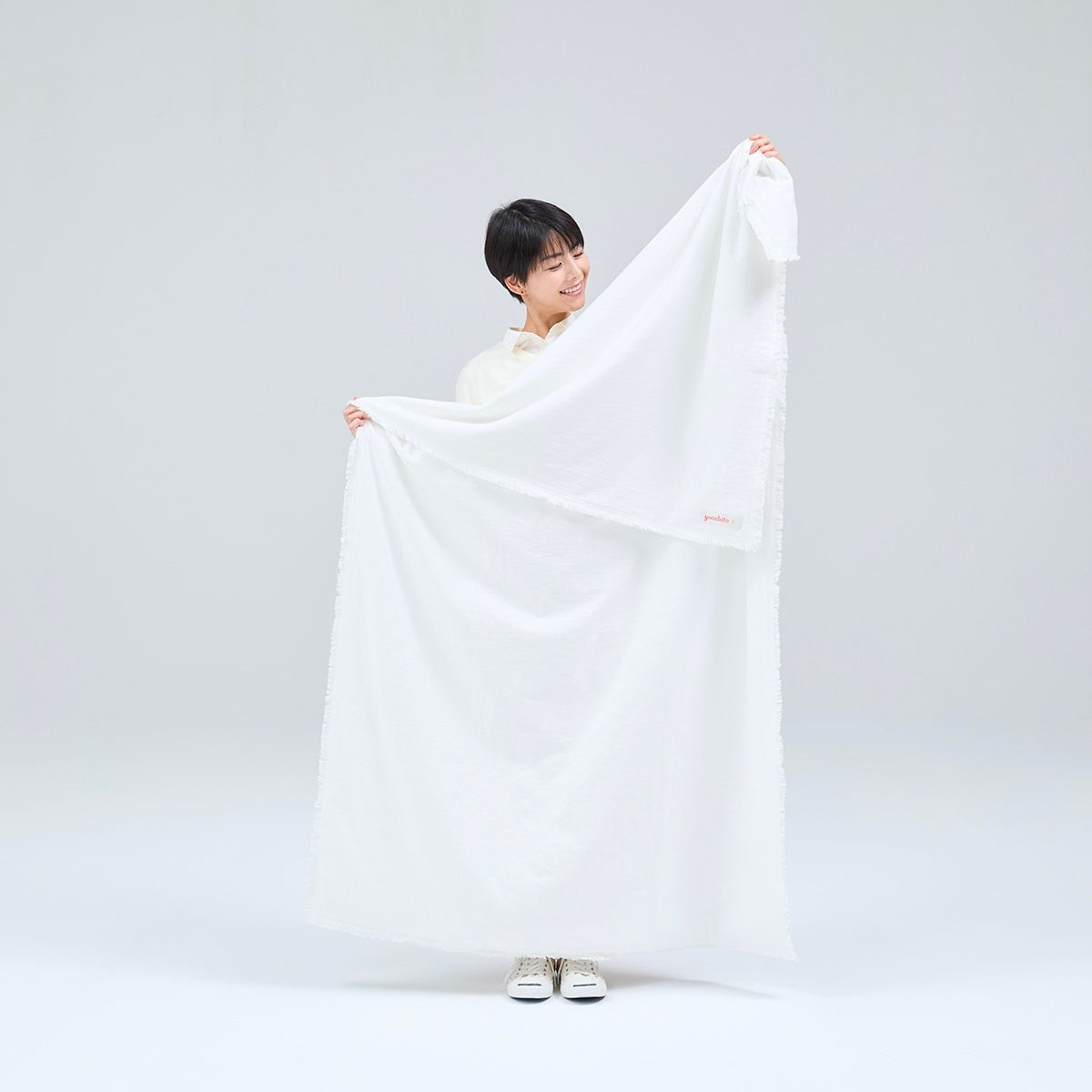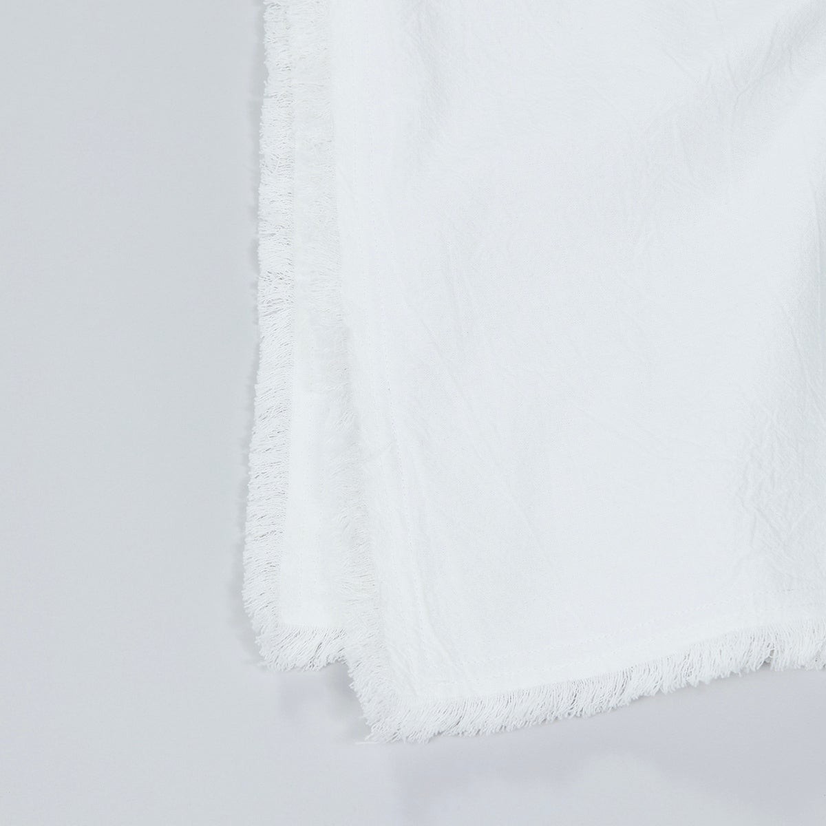 リネンを贅沢に配合し、丁寧に施されたシワ加工が、広げた瞬間から自然な風合いとエアリー感を引き立てます。リラックスした空間を演出しながら、上質なひとときを感じさせます。