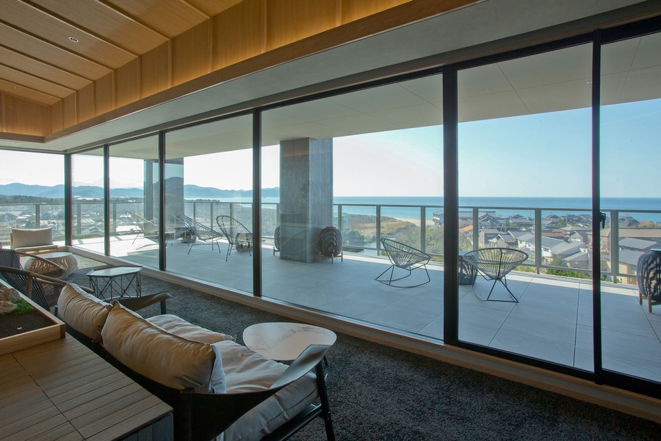 【ラウンジテラス碧-AO-】窓一面に広がる海景