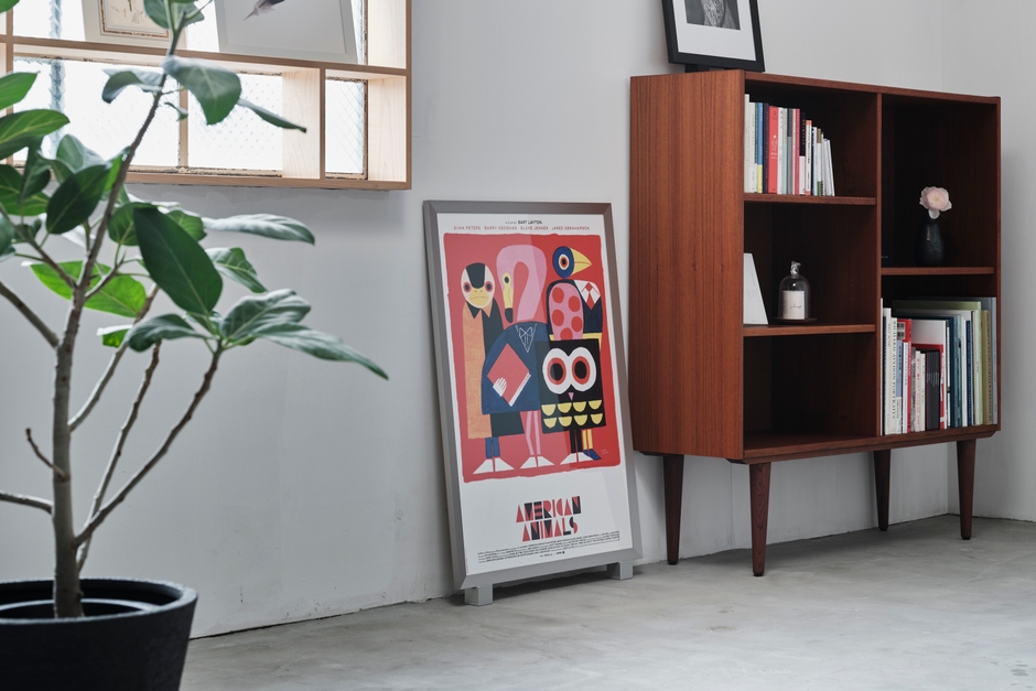 立てかける展示は気軽で良いですが、地面に額が接しているというのは少し粗野な印象もあります。そこで、この「FOOT」に載せることで、気軽にそして上質に展示することができるようになりました。