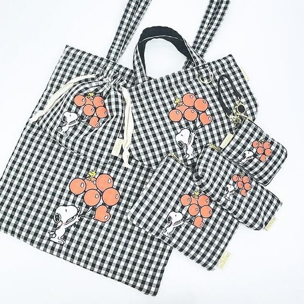 【優秀】「スヌーピー」バルーン×チェック柄アイテムをまとめてご紹介。カラビナ付きのトートバッグは、好きなキーホルダーが付けられる!