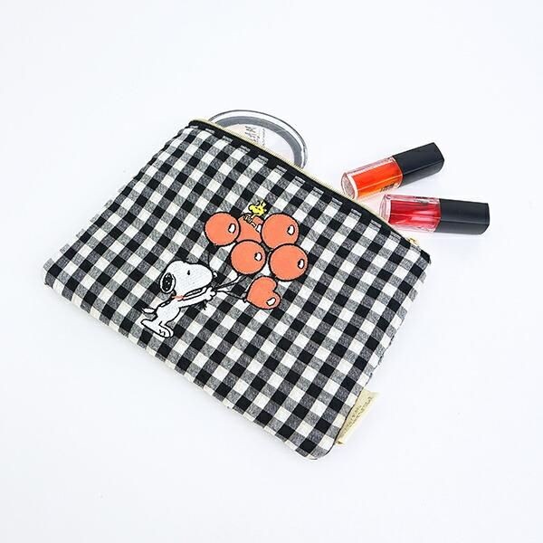 最後にご紹介するのは、「スヌーピー フラットポーチ (バルーンチェック) SNOOPY」。サイズ:14cm×20cm×1.5cm。素材:綿、ポリエステル、ポリウレタン、亜鉛合金。