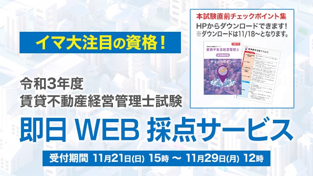 2021年度 賃貸不動産経営管理士 本試験 即日WEB採点サービス