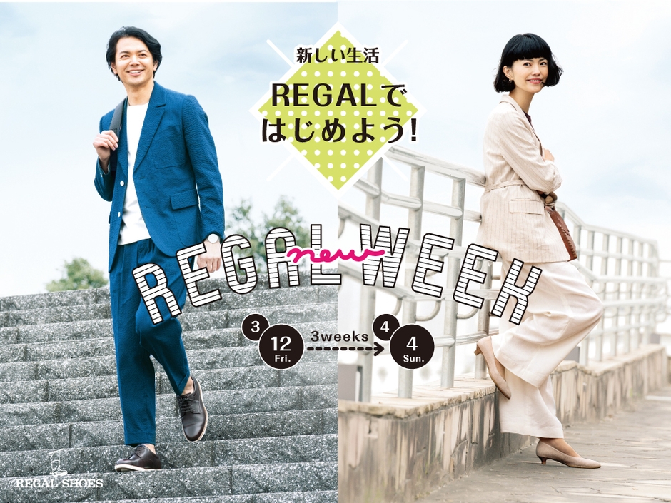 REGALの専門店「REGAL SHOES」で3月12日(金)より「REGAL new WEEK」を開催。店頭では、感染症拡大防止対策に努め、皆様をお待ちしております。また、期間中は店頭だけでなく、REGAL ONLINE SHOPでも同時開催いたします。新たな一歩を踏み出す一足を、ぜひお求めください。