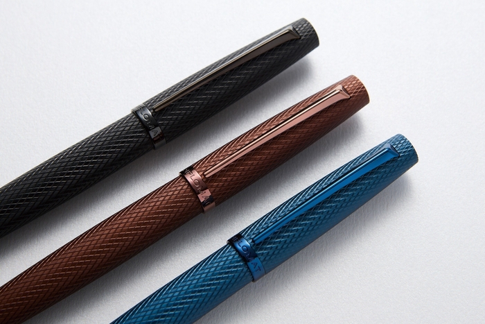 VIPER(バイパー)は、ギロシェパターンの彫刻だけでなく、アノダイズ加工のメタリックな風合いの仕上げとも好相性となっており、流線型のフォルムはボディ、グリップ、そして精緻に設計され滑らかな書き味を発揮するフーデッドニブへと一体感のある曲線を描きます。従来使用していた14金ペン先(エクセレンスA2、アエロなど)をステンレスにすることで価格を抑え、初めての万年筆としても最適なアイテム。機械で代えることの出来ない熟練による手作業で作り上げられたVIPERは、3色から自分のスタイルに合わせて選択できます。