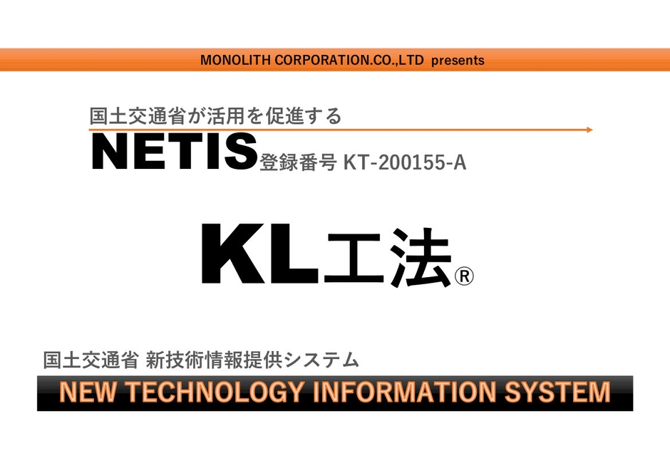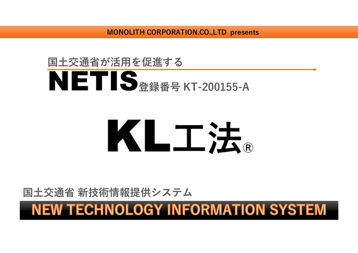 モノリスコーポレーション株式会社(所在地:神奈川県相模原市、代表取締役:亀井 昭利)は、NETISにKL工法を、2021年3月15日に登録しました。