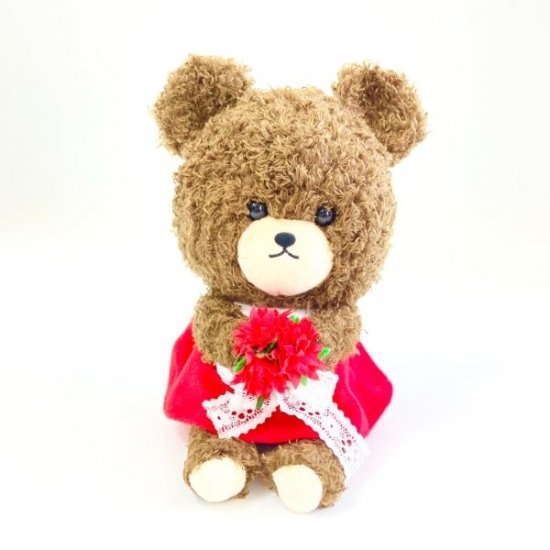 赤い花束をもったジャッキーは、お洋服も赤いワンピ♪