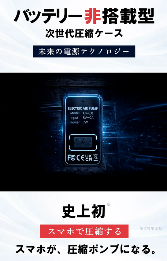 旅行やビジネス出張時、限られたバッグのスペースを有効活用したいというニーズは古くから存在してきました。特に、便利な旅行ツールとして圧縮ケースへの関心がより一層高まっていますが、利便性が高い電動型製品は「付属品が多い」「機内預け入れが出来ない」といった課題に直面していました。