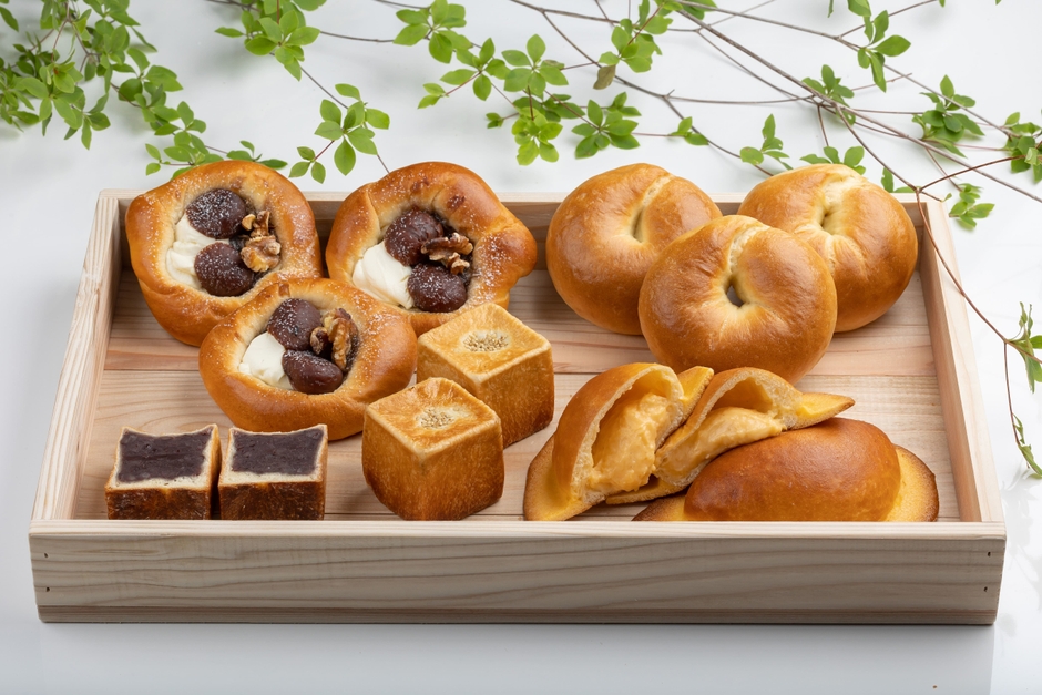 和食材使用の高級生食パンやとろけるクリームパン、 季節のフルーツをごろっと包んだ大福など