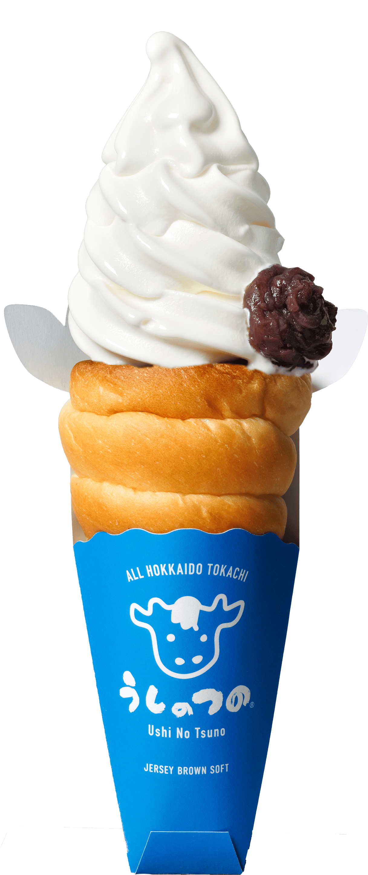 自社製コロネパンにこだわりの十勝産小豆とソフトクリームをたっぷり詰め込んだ、新千歳空港限定の大人気スイーツ「うしのつの あんこ」(780円・税込)。今回のリニューアルに合わせ、牛の顔と角を模したとってもキュートな青い専用うしのつのスリーブでご提供します。空港での思い出の一枚にぴったりの、SNS映え間違いなしのスイーツです。