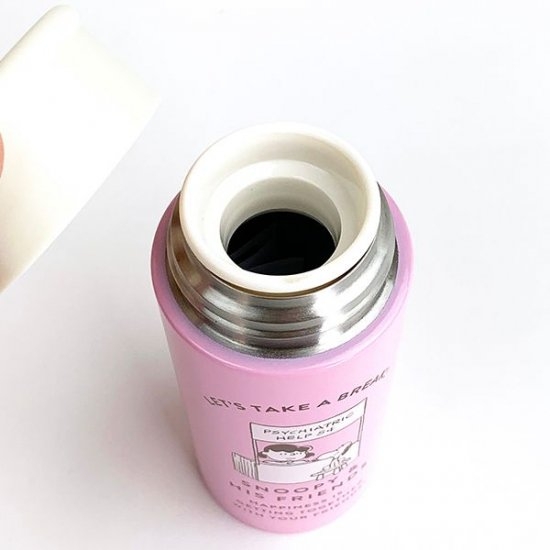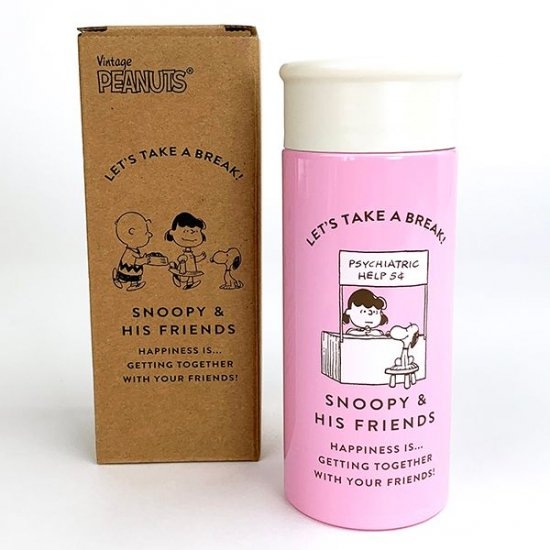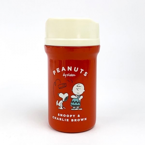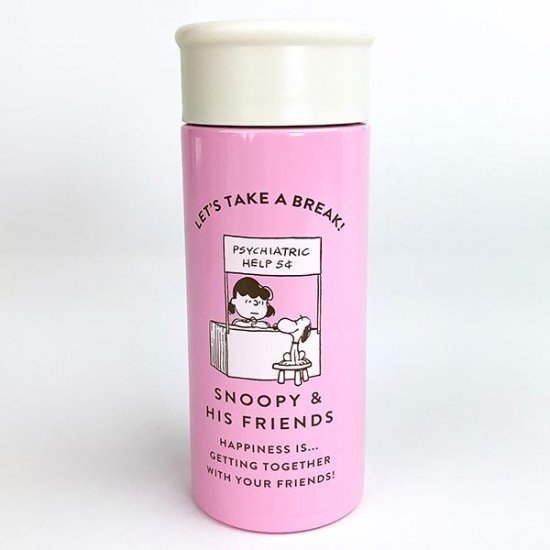ピンクの本体にホワイトのフタ、そしてスヌーピー&ルーシーのデザインというキュートな要素満載のポケトルです。