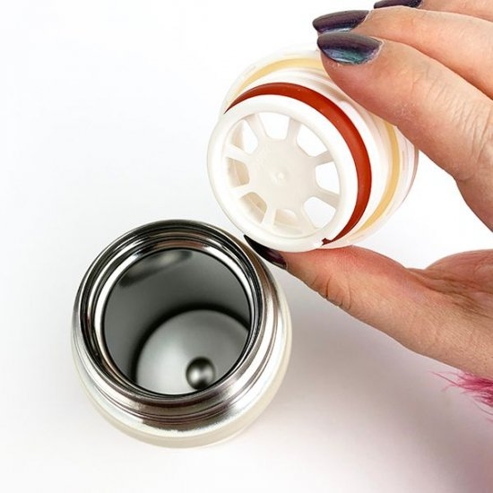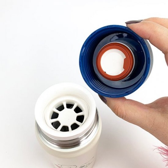フタを開けると、飲みやすさを考えた飲み口になっています。中はステンレス製なので、保冷や保温効果が高く1年中快適に使えます。