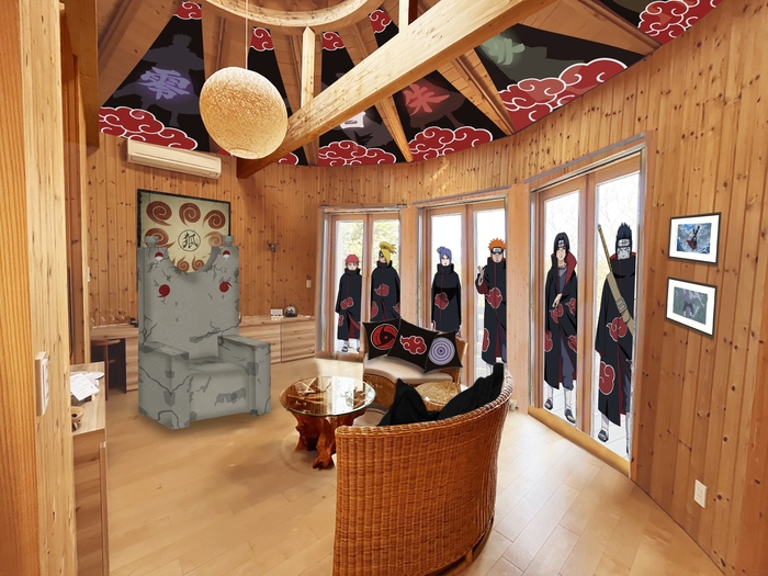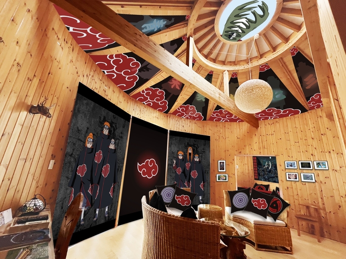 そして、この度、コラボルーム第2弾として、「NARUTO-ナルト- 疾風伝」で大人気のS級犯罪組織“暁”のメンバーが一堂に会し、各キャラクターのストーリーに合わせたデザインやインテリアが楽しめる コラボルーム『“暁”のコクーン』を開設いたします。本コラボルームは最大4名が宿泊可能で、うちはイタチが弟サスケを待ち迎えるときに座っていた「イタチの椅子」をはじめ、“暁”をモチーフにしたインテリアや限定オリジナルグッズなど、まるで“暁”の一員になったかのような特別な宿泊体験をお楽しみいただけます。