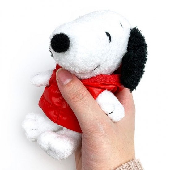 ある寒い日のスヌーピーが2サイズで登場。スヌーピーも冬支度♪真っ赤なダウンベストがオシャレなぬいぐるみ&マスコット