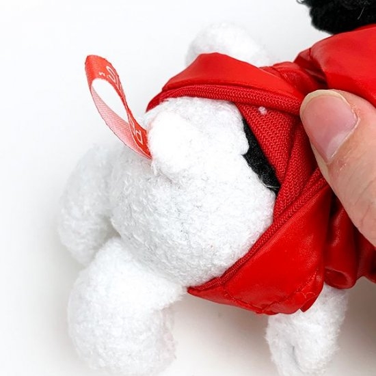 リアルなダウンジャケット姿の、スヌーピーのぬいぐるみです。スヌーピーって赤似合いますね!ドッグハウスも赤でしたし♪