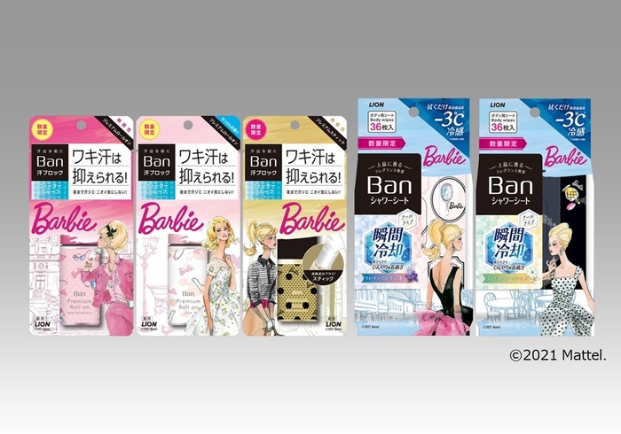 ライオン株式会社(代表取締役社長・掬川 正純)は、世界一有名なファッションドール「バービー」をパッケージデザインに採用した『Ban 汗ブロックロールオン プレミアムゴールドラベル』『Ban 汗ブロックスティック プレミアムゴールドラベル』『Ban 爽感さっぱりシャワーシート クールタイプ』を、2021年3月31日(水)から全国で数量限定にて発売いたします。