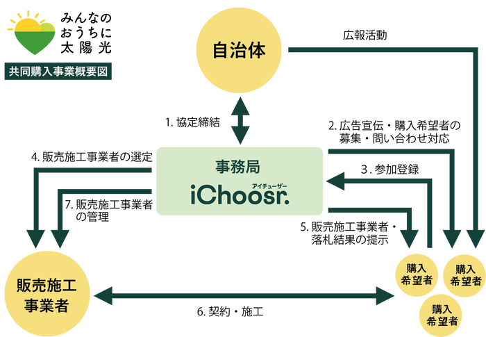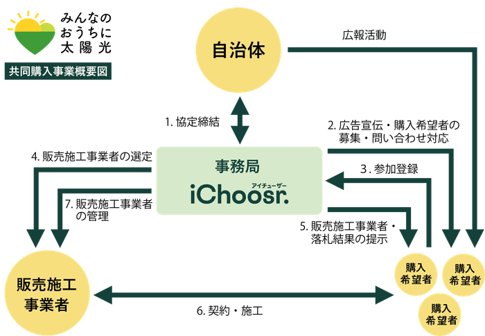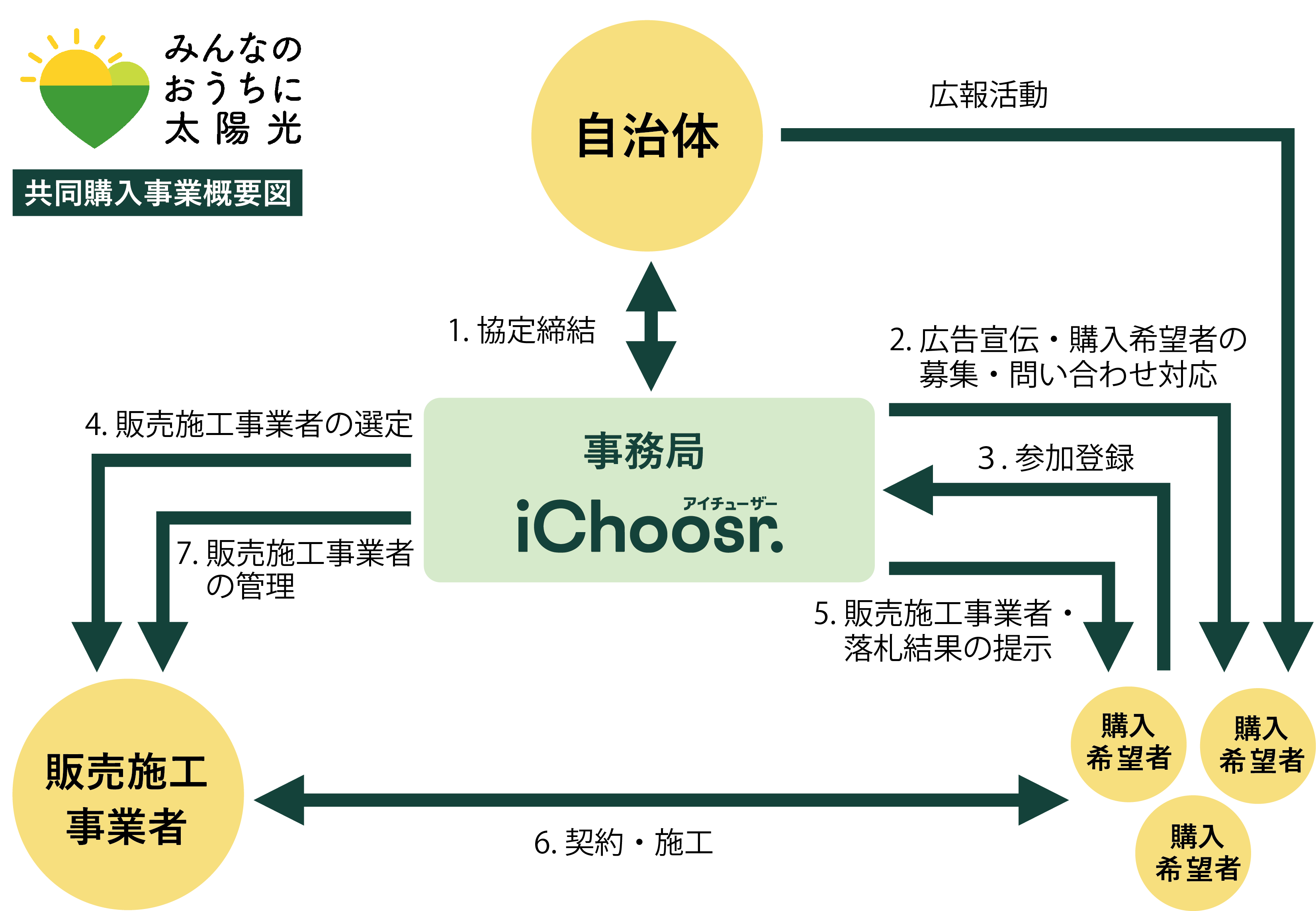 太陽光パネル・蓄電池の共同購入事業は、公募により選ばれ、協定を締結したアイチューザー株式会社(本社:〒106-0047 東京都港区南麻布5-2-32、代表取締役社長 廣瀬 彬)が運営しています。