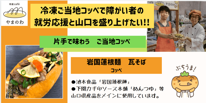 特産caféやまのわ(所在地:山口県、代表:山田豊佳、以下「やまのわ)」)は、クラウドファンディングサービス「READYFOR」にて、障がい者の就労応援と山口県の地域活性化を目指すプロジェクト「冷凍ご当地コッペで、障がい者の就労応援と地方を盛り上げたい!!」を公開しました。
