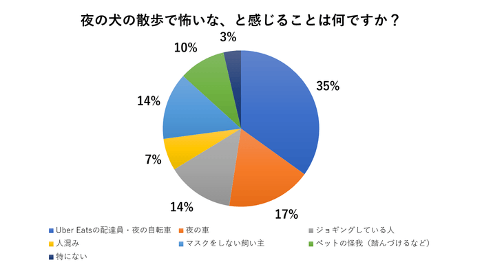 緊急事態宣言発令後、コロナ禍のペット(犬)散歩アンケート調査 夜の散歩で怖い「Uber配達・自転車」35% 3密対策1位は「人が居ない時間に散歩」、2位「夜に散歩」